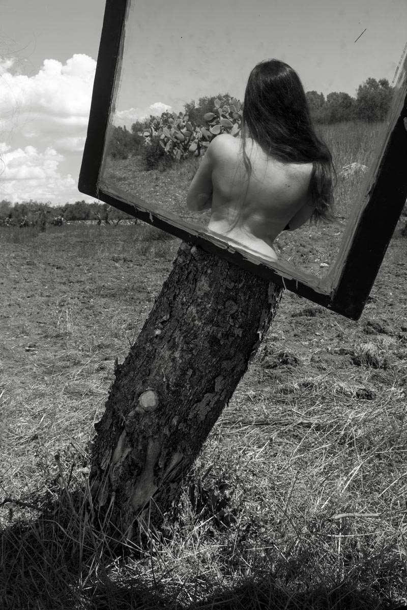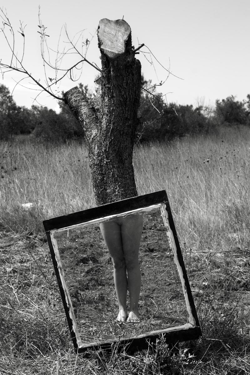 The female body is related to nature, especially the three, in order to create a single being. Mirror is the medium that allows this visual and conceptual union.
